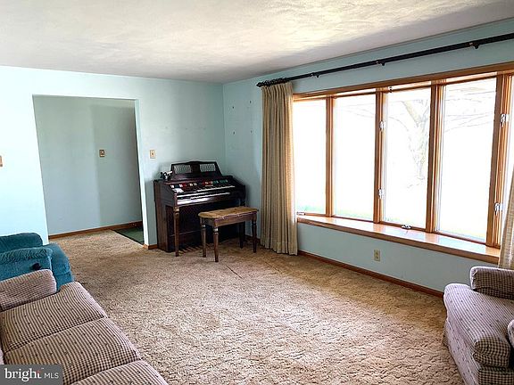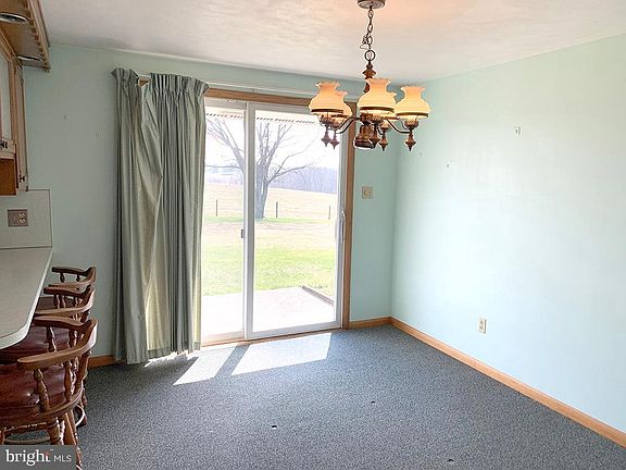 This ranch home has good bones and ready for a face lift to your liking. There are beautiful views from all the windows to taking in the Blue Mountains in the front and horse pastures in the rear that you do not have to care for. The home has a nice front porch to sit on and take in the view with a foyer into the home. A large living room has a huge bay window that makes the room bright and cheery. The combination dining room/kitchen has an island with stools and sliders to a patio. There are 3 nice size bedrooms and plenty of closets with a common bathroom in the hall. There is a large vanity and tile combo bath tub unit. Heading thru the kitchen to the garage there is an additional FULL bathroom with stall shower and an office area with laundry hook up with a rear door to the backyard. The garage is over-sized for 2 cars and an additional work area in the rear. The lower level is partially finished into a family room with a brick fireplace. There are additional closets for storage. The main heat is electric in ceiling but the owner created a wood stove and ductwork through out the house for very economical heating bills in the winter.