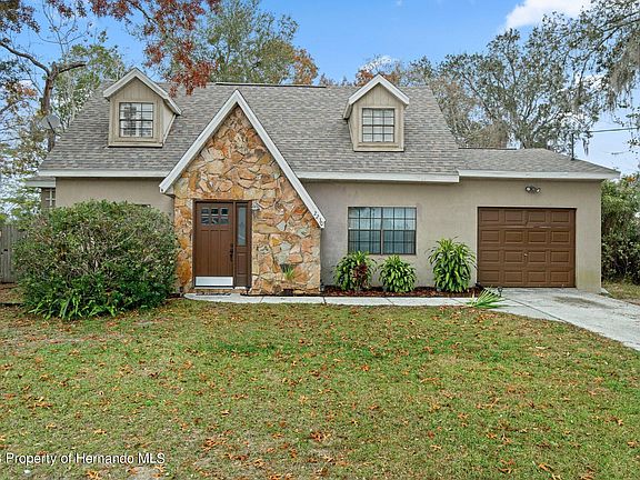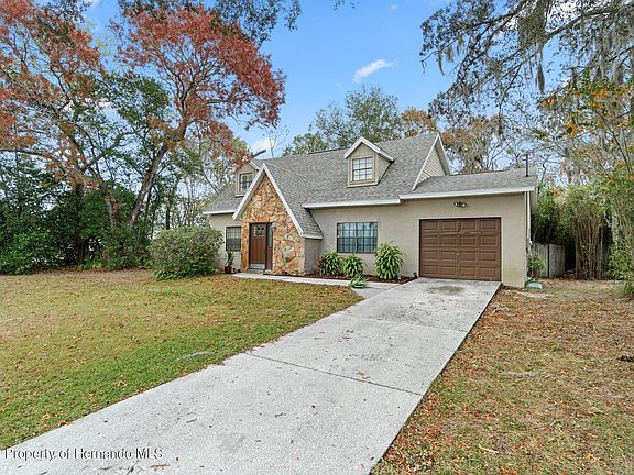This corner lot property boasts a charming two-story Tudor-style architecture, offering a picturesque appeal with its distinct design. Featuring four spacious bedrooms, with the potential for a fifth bedroom/bonus room. This home caters to various living arrangements and needs. Ennjoy the convenience of three full bathrooms, including two on the main floor, ensuring comfort and accessibility for residents and guests alike. The bathrooms have been updated ensuring a contemporary and stylish aesthetic throughout the home. The roof, a vital aspect of any home, was recently replaced in 2022, ensuring reliability and peace of mind for years to come. The primary bedroom and an additional bedroom are situated downstairs, accompanied by two full bathrooms, providing a versatile layout for multi-generational living or guest accommodations. Upstairs, two generously sized bedrooms await, with the potential for a 3rd bedroom/office/Den and a full bathroom, allowing for flexibility in how the space is utilized. Upstairs windows are fitted with plantation shutters. The main floor comprises a welcoming living room to gather around family and a well-appointed kitchen featuring tile counters, complemented by wood cabinets, stainless steel appliances and a window by the sink allowing natural light to fill the space. An inviting eating area seamlessly connects with the kitchen, creating a comfortable space for meals and gatherings. The property boasts a spacious yard brimming with untapped potential awaiting a touch of care and creativity. Amidst the expanse lies resilient bamboo, providing a serene backdrop. From your covered patio, offering a cozy retreat to enjoy the outdoors this sanctuary offers a fire pit area which beckons gatherings. Off to the side a pavered lined path leads to an enchanting secret garden—awaiting discovery, revealing its splendor with breathtaking blooms in the spring. The yard is enclosed by a weathered wood fence which is in need of tender repair to restore its allure. This property is minutes to the Suncoast Expressway and close by to shopping, restaurants, doctors and hospitals. Schedule your showing and make an offer before this rare gem is gone.