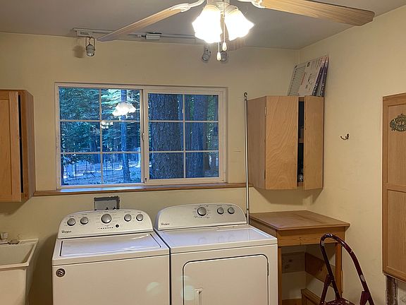 Currently being painted and master bathroom being remodeled prior to rental. Will update photos once completed. House fully remodeled under 3 yrs ago. Upgraded counter and stove top, sink, fridge, bathroom and laminate flooring. Located on one acre lot with owner occupied 2nd house. One plus car garage, private back yard in the forest. Close to hwy 50, 10 min drive to Sly Park, 45 mins to Tahoe! Renter pays own utilities, except for water. Water is on one bill, shared with owner. Road snow removal paid by owner.