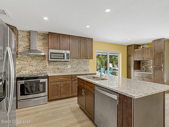 NEW LVP in living area and kitchen, travertine tile, gourmet kitchen with stainless steel appliances, quartz countertops, island, and stone backsplash. Master suite features spacious bedroom, large walk in closet and updated bathroom with unique glass window. 2 Additional bedrooms and updated guest bath complete the house. Close to Kelly Park with boardwalk to boat launches and fishing, close to beach and the Port.