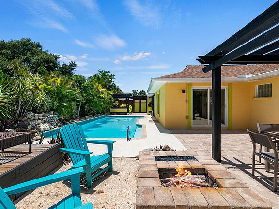 Florida Living at its finest! Located in a quiet neighborhood, this home features an amazing outdoor space to gather with family and friends. Whether you enjoy lounging on the sundeck listening to the fountains, taking a refreshing dip, gathering around the firepit or having your morning coffee under the pergola, this backyard has it all. Plus there's additional storage on the side of the home. Home has been updated including