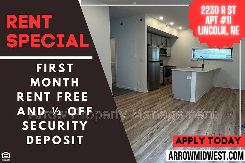 Welcome to 2230 R Apt #11, a brand-new apartment community located in the vibrant city of Lincoln, NE. Offering a modern and stylish living experience, these 1-bedroom, 1-bathroom apartments are designed to meet your every need. Step inside your new home and discover the convenience of having an in-unit washer and dryer, making laundry days a breeze. The sleek stainless-steel appliances in the kitchen add a touch of elegance, while the granite countertops provide ample space for meal preparation. Situated near City Campus, you'll enjoy easy access to all the amenities and attractions that Lincoln has to offer. Whether you're a student or a professional, 2230 R is the perfect place to call home. Don't miss out on this opportunity to live in a contemporary apartment with top-notch amenities. Additional information- Pets negotiable with a $150 non-refundable pet deposit and monthly fee per pet. Tenants to pay an additional $85/month common services fee which includes internet, parking, snow removal and maintaining of the commons area. Complimentary wardrobe/dresser available upon request. All Arrow Property Management residents are enrolled in the Resident Benefits Package (RBP) for $30.00/month which includes liability insurance, credit building to help boost the resident's credit score with timely rent payments, our best-in-class resident rewards program, and much more! More details upon application. Amenities: off-street parking, granite countertops, in unit washer and dryer, stainless steel appliances, modern updates, located minutes from city campus