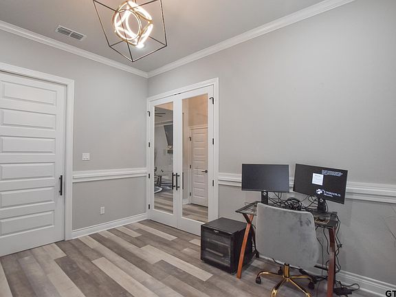 This beautiful custom home features an open concept, split master, guest suite, two sliding barn doors and a bonus room! The spacious living room features an electric fireplace, trey ceiling, and crown molding. Enjoy sophisticated entertaining in the formal dining. The eat in kitchen with breakfast bar is fabulous, featuring a gas cook top, large island, double ovens, and a farm sink. Just off the kitchen you will find the master suite featuring a pocket ceiling and a second electric fireplace. The master bath has two vanities, his and her closets, jetted tub, and connects to the mud/utility room featuring built in cabinets. Across the house you will find the guest suite that connects to the bonus/media room. Across the hall are the additional two bedrooms and full bath. The fully fenced backyard with covered patio is perfect for family BBQ's. This home will not last long, call for your private tour today!