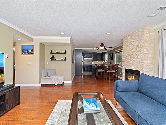 Amazing Price for this Beautiful Move-in Ready Condo in the desirable Vista Del Oro neighborhood!! This rare one-level, 3 bedroom/2 Bathroom features beautiful wood- laminate flooring throughout, an elegant fireplace, a peek-a-boo view and a private balcony perfect for entertaining! The completely remodeled kitchen is open and bright with granite countertops, stainless steel appliances and travertine floors. The home also includes in-unit laundry (washer and dryer included), 2 separate private storage rooms, and a private tandem garage (currently being used as a one car with a workout area). This quiet and secure 4-Unit building with close access to beaches, schools, freeways, and across from a local favorite bakery, store, and restaurant is the perfect place to call home!!