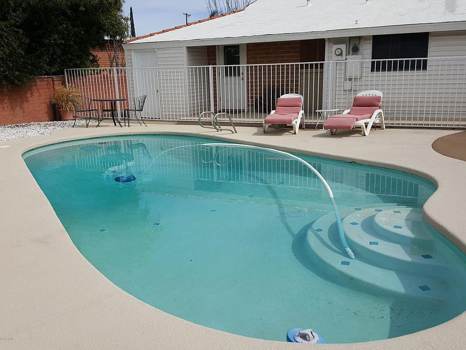 Completely remodeled, granite counter tops, new appliances, large lot, refreshing swimming pool, ramada, built in barbeque, workshop and additional storage, air conditioner and furnace replaced 3 years ago, all new ceiling fans throughout with matching sconces, fireplace in living room with nice custom wood mantel, no popcorn ceilings, large master suite with glass shower, extra parking can be used for basketball court, and small doggie door make this a move in ready home. Easy access to pool from master suite. House has ''good bones''.