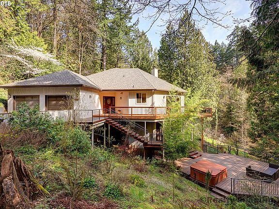 Quality custom home on 3.74 acre private oasis with creek. New roof '16, expansive decks redone '17., Vaulted great room with cherry floors. Stunning entertainer's kitchen with Dacor 6 burner stove, copper sinks, Kraftmaid cabinets and huge island. Full upper level master suite. 2nd master on main with full bath. Walk-in closets in all bedrooms. New interior paint. 3 car tandem pull-through garage. Buyer to verify development potenial.