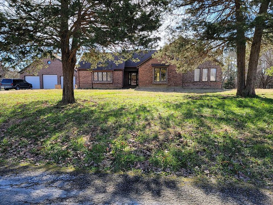 Beautiful brick and stone home in a peaceful country setting! If you are looking for that custom built home with lots of amenities suchas spacious living room with vaulted ceililings, fireplace and hardwood floors. There is a sunroom with a patio on the back and a basement. There is a 2 car attached garage and a 3 car detached garage that has a bonus room above it.l This would be great for a playroom or recreation room or office. It is heated and cooled. This home sits on 1.5 acres m/l which is all fenced in on a corner lot. This home has 2785 sq. ft. not including the bonus room., This home is on city water but also has a well.