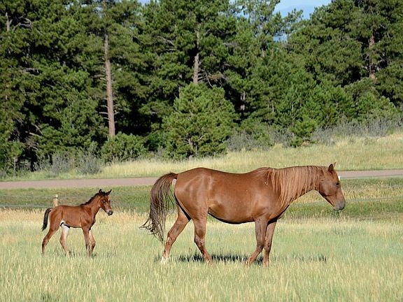Awesome horse property with custom home inc. finished walkout, wonderful mountain views, very private setting, large front porch plus patio out back, wood stove, country kitchen with center island & breakfast bar, hickory cabinets, ss appliances, large walk in pantry, vegetable sink, spacious dining room, entire main floor is hardwood, master bedroom features large walk in closet & nice 5 piece ba & garden tub. Large great room downstairs. 42 x 42 barn features vaulted studio apartment with narrow shiplap, laundry in barn/apartment, tack room, hay storage, 2 large foaling stalls that could be 4, 42 x 12 barn overhang for equipment storage, 2 loafing sheds, outdoor arena, 4 pastures, entire property is fenced except 5 ac, 3 solar chargers for horse guard fencing. Russellville is part of the original settlement in Douglas Co. becoming famous for it's rumors of gold found. It also has a colorful military history. In 2004 Douglas Co. designated the ranch a historical landmark.