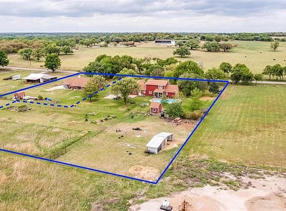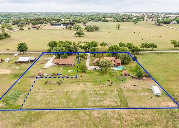 Home Sweet Home on 1.985AC, outside city limits. Pleasant views from porch. Kitchen has island, amazing pantry, room for a harvest table. Look out your kitchen sink window to the back yard, and enjoy the scenic view. Living off kitchen has woodburning stove, 2nd living room is perfect for gathering and games. Master down, 2 beds up with bonus room perfect for toys. Backyard has pool, vegetable gardens, fruit and pecan trees, chicken coop, goat shed. Pipe fencing around most of property. Cross fencing as well. Water is provided by well that is shared with property to the east. Well is located on that property. Shared well agreement is in place. Huge added bonus, the 1055 SF house next door on 1 AC IS ALSO FOR SALE! Darling Home with 2 beds, 2 baths, ADA features, perfect for multi-generational living. See MLS Listing #20052123, as well as #20052519, where these 2 homes are being listed together for $725,000.