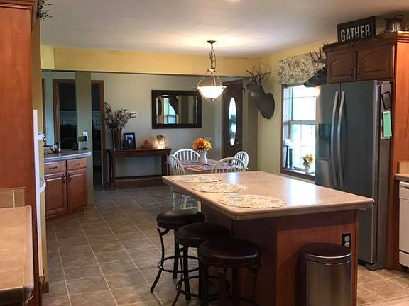 Country Home & Views. This home is secluded on a large 2 acre lot and features a 60x40 Pole Barn with an Entertaining Room with full bathroom. Home was built in 2009 and includes 3-4 bedrooms/2 full bathrooms and an attached 2 car garage. Large living area with an open floor plan. The kitchen features lots of cabinet & countertop space, built-in counter range, wall oven & microwave. Kitchen also features an island and extra storage area in dining room. Master suite includes a 14-foot long walk-in closet, double vanity, soaking tub & large step-in shower with glass walls. Additional bedrooms are nicely sized with great closet space. Laundry room features cabinet storage and a built-in sink. There is a possible 4th bedroom (No closet) or could be used as an office or bonus room. Updates per seller: Roof, Guttering, Siding, & A/C Unit all replaced in 2012. There is a well system available for irrigation. Home is on city water.