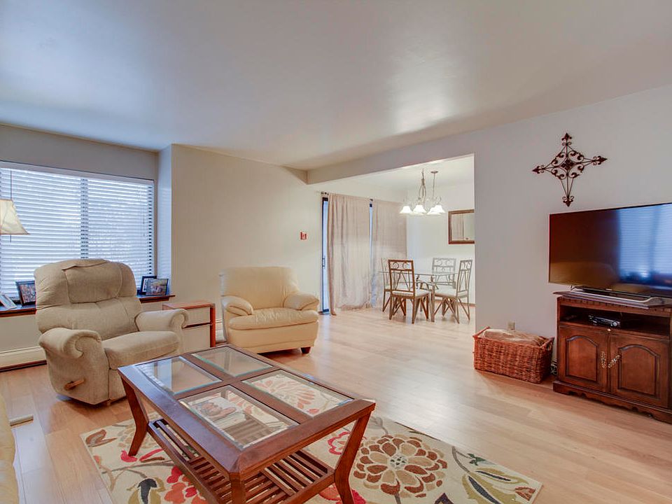 Welcome home to this townhome style 2 bedroom, 1.5 bathroom condo in Manchester Village. Bright and well-maintained home features brand new floor in kitchen, as well as newer floors in living room, newer tile in full and half bathroom, newer vanity in full bathroom, and newer kitchen countertops and stainless refrigerator & stove. Patio off formal dining room, in-unit laundry, one car detached garage, and large basement storage area complete the package. Condo fee includes water, garbage, heat, snow/grass removal. Pool, community room, exercise room available.