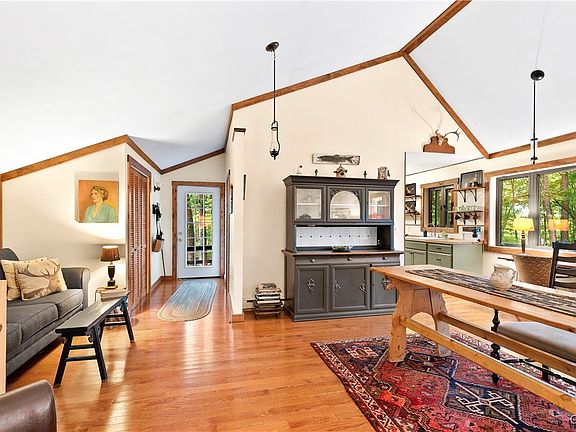 A nature lovers retreat, located in Skaneateles, NY. This year round two-bedroom home features deeded lake rights, a mooring, seasonal lake views, a private wooded lot, a spacious deck and cathedral ceilings. The owners have completely updated the home to include, a gas fireplace, natural woodwork, lighting and fixtures, tiled shower and bathroom amenities, a quaint kitchen with butcherblock countertops, open shelving, and a Fisher & Paykel induction range. Larger improvements include complete drainage around the home and a new standing seam metal roof. A little piece of paradise, only 5 minutes from the Village of Skaneateles, surrounded by nature and a short walk to the shared level lake frontage. A rare opportunity to own a piece of Skaneateles Lake, make your appointment today.