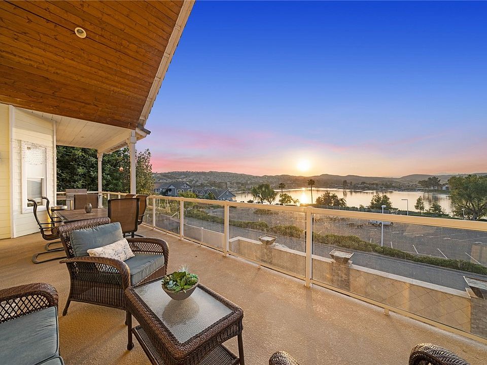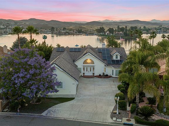 BUYER DIDN"T PERFORM!! STUNNING MAIN LAKE VIEWS AND PAID OFF SOLAR!! Canyon Lake is a lifestyle town and this home harness the best Canyon Lake has to offer! 5 bedrooms, 4 bathrooms, 4050 sq. ft, BRAND NEW top of the line SALTWATER POOL with all the bells and whistles and the "Cadillac" of filtration systems, 4 car garage, 3 A/C units for separate cooling and heating, storage galore (4 car garage attic space worth and yes you can stand up there!), privacy in the backyard with a FRONT ROW SEAT to all the activities at Holiday Harbor. Like concerts? Listen to them from the comfort of your own home! Enjoy the BEST seats in town (from the main deck) to Canyon Lakes private firework show without having to venture out into the chaos of 4th of July. This gorgeous A-frame house is one of the special ones, a well known and loved property built in 2003 and boasts a huge open floor plan with soaring ceilings, well appointed double door entry with crystal chandelier, tons of bar seating and opens to the family room, with a grandiose fireplace, dining area and VIEWS from every room. The main deck spans the width of the house and has a plexy glass railing, so you don't miss a thing. The primary suite boast perfect main lake veiws from your bed, your very own fireplace, a large walk in closet, soaking tub and an upgraded shower. A second en-suite bedroom room, laundry room and a 3rd bedroom (currently being used as an office) completes the first floor. Downstairs you'll find a game room, complete with a pool table and built in wood bar, and direct access to the relaxing backyard and pool area. The other 2 bedrooms and bathrooms are also downstairs, both are enormous rooms that you must see to appreciate! Canyon Lake is a 24 hour guard gated community with a private 525 acre lake, premiere wakeboarding and waterskiing, 18 hole SCGA rated golf course, Lakefront pool, Equestrian center, tennis & pickleball courts, baseball fields, beaches and parks and so much more!