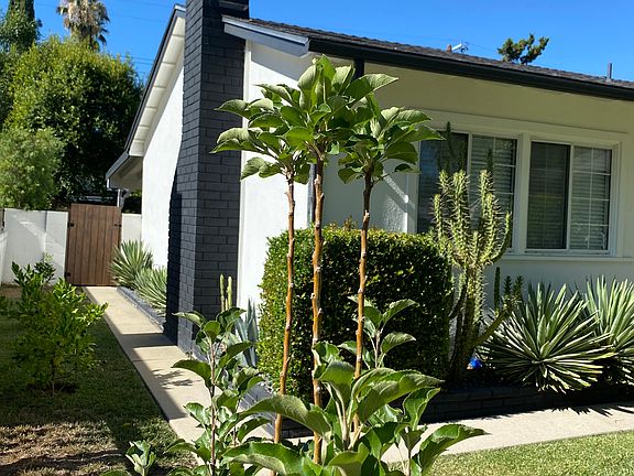 Just reduced the price. Charming Ranch-Style Home for Lease in Quiet Woodland Hills Neighborhood. Discover comfort and character in this beautifully maintained ranch-style home, available for lease in a serene and highly desirable pocket of Woodland Hills. Situated on a large, neatly landscaped lot, this home offers a perfect blend of vintage charm and modern updates. Step inside to a warm, freshly painted interior with original vintage hardwood flooring and a cozy fireplace. The remodeled kitchen is designed for both functionality and style, featuring tile flooring, quartz countertops, upgraded cabinetry, a custom backsplash, high-end appliances, and a designer fan/hood. The primary suite includes a remodeled bathroom with extensive custom tile work, a seamless glass shower, and a relaxing jacuzzi tub. Window upgrades throughout the home provide added comfort and efficiency. Additional features include a newer central air conditioning system, a newer front door for enhanced curb appeal and insulation, central heating, and an attached two-car garage. Outdoor spaces include a welcoming front porch, a covered back patio, and a generously sized backyard with well-maintained hardscaping ideal for relaxing or entertaining. Located close to Westfield Topanga Mall, The Village, and major local amenities, this is a rare leasing opportunity in one of Woodland Hills' most peaceful and convenient neighborhoods. Available for lease now don't miss out on this exceptional rental!