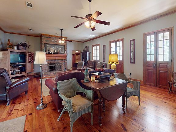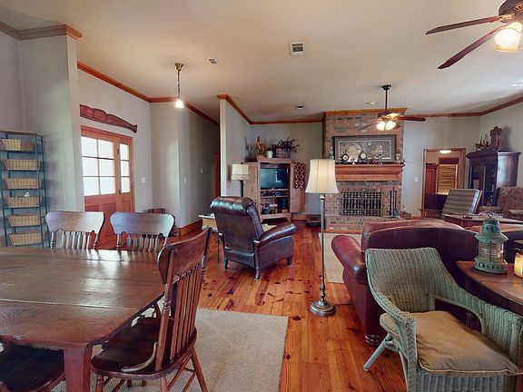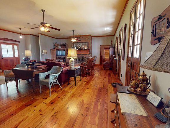 This beautiful custom built home has it all! Plenty of privacy and sits on 20 secluded acres with approximately 6 acres of that cleared. Inside there are beautiful pine wood floors, custom built pine kitchen cabinets, granite counter tops, 10 ft ceilings throughout, a large brick fireplace, a large screened in back porch, covered carport big enough for two vehicles and much more to offer!