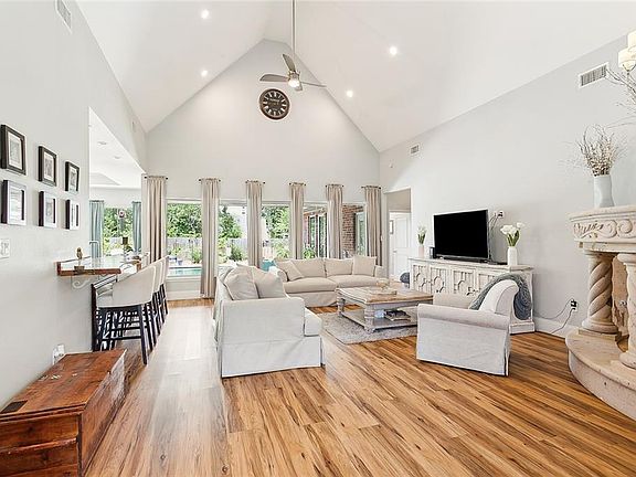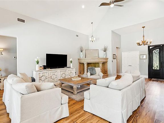 Welcome to this exceptional property, where luxury and functionality converge. Inside, the kitchen boasts ample storage with two walk-in pantries, quartz countertops, and a stovetop water faucet (pot-filler). The living space is enhanced by vinyl flooring throughout and ten 6-ft floor-to-ceiling windows that flood the home with natural light. Relax in the large master bedroom with a walk-in shower and direct access to the pool and patio area. Other highlights include a gas fireplace made from imported Mexican volcanic stone, Oceana glass sinks, and plank cypress countertops both inside and outside. The property also features a pool and patio with a 6-ft gunite lap pool, three fountains, and a gas fire pit. Security is paramount with a whole-house security system, two iron security doors imported from Rosarita, MX, and a 6-ft privacy fence surrounding the property. Additional amenities include a large laundry room with a folding area and mud sink, extensive attic storage with staircase access, fruit trees, landscaped flower beds, and the option to purchase home furnishings and a zero-turn mower. This residence features a whole-house generator, ensuring uninterrupted comfort. The property includes a spacious 2-car main garage and an additional 1-car smaller garage that doubles as a workshop or tool shed. Enjoy the versatility of a 500+ sq. ft. mother-in-law suite that is currently included in the living sqft., plus a semi-finished upstairs room that can be an office or 6 th bedroom. The home is equipped with a tankless water heater, storm windows, and two AC units for optimal climate control. This home combines elegance and practicality in a truly unique setting. There is so much more to see, schedule your private showing today !
