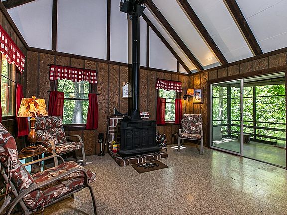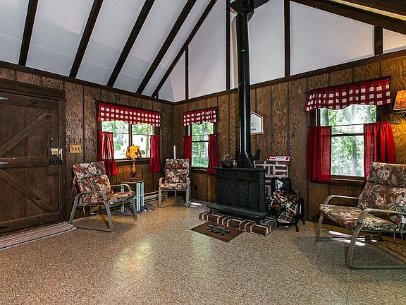 Tranquility on 2 wooded acres within walking distance to the lake. Enjoy this cute little cabin nestled in the trees for privacy and nature abound. Sit in the screen porch and watch the wildlife. On the cold nights crank up the wood stove. There is a separate bedroom and a small loft in addition to the main living area. This property has its own septic and shares a well with a neighbor. If you want to get away and relax give this a look!