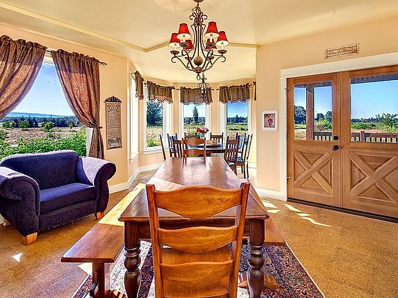 Incredible and unique Arlington estate home on 10 acres! This one of a kind home boasts gated entry w/ October Glory lined entry and circular driveway, kitchen w/ antique reproduction stove, magical music room and storybook staircase. Master bedroom enjoys its own gas FP, french doors leading to deck with panoramic sunrise views of Mt. Pilchuck and 3 Fingers. Explore the level property filled with established fruit and nut trees and garden space. Fabulous opportunity!