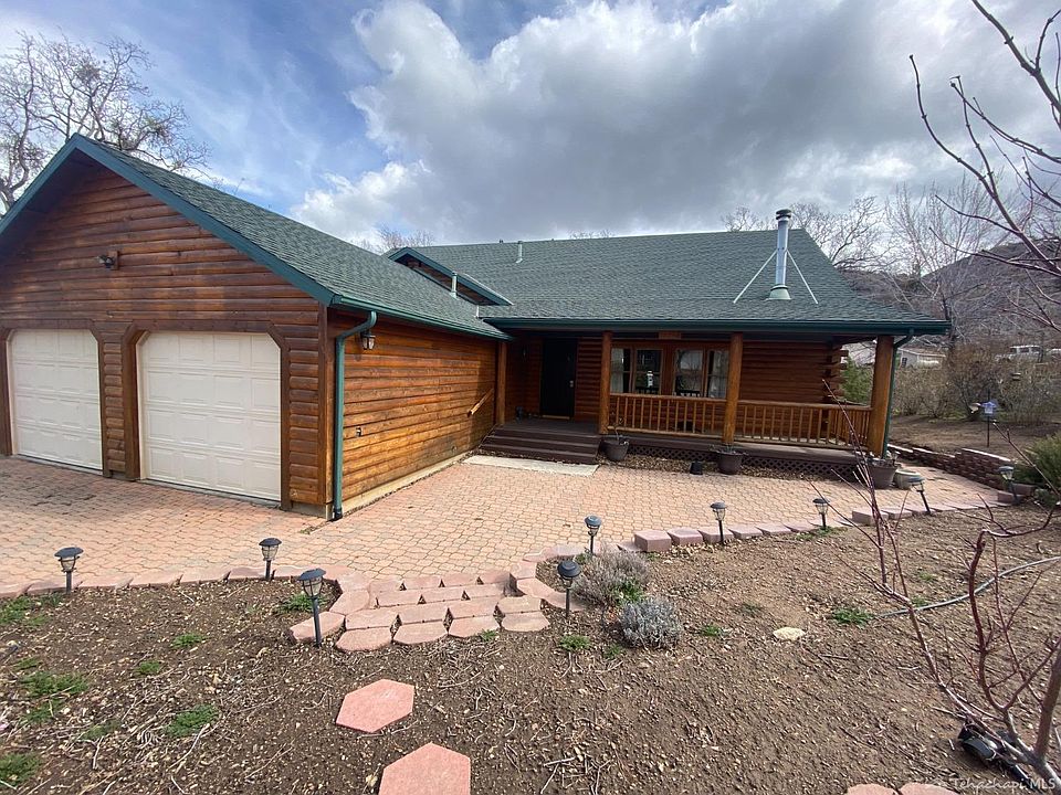 A wonderful 2447 sq.ft. log home is located in Alpine Forest only minutes from town! This rare log home is located on a quarter acre lot with a beautiful driveway and front entry made of decorative pavers and surrounded by low maintenance landscaping. The large covered porch in front invites time with family and friends. The amazing Great Room features a pellet stove and wood laminate flooring and beautifully crafted vaulted ceiling. This room is open to the wonderful kitchen which features granite countertops, large island, stainless appliances including a double oven! The large walk-in pantry holds all the family basics plus! The dining area also has a built in hutch for even more storage space! There is a downstairs master suite with full bath and an upstairs suite with 3/4 bath and walk in closet and additional attic space plus access to its own private balcony! The upstairs loft gives extra room for a library, office, playroom/hobby room or whatever meets your needs! The downstairs laundry room has added cabinet and counter space. There is also a downstairs permitted bonus room with a closet that was added in 2022. which leads out to the large back open deck and is great for barbeques and family time and overlooks the fully fenced back yard! Besides the two-car attached garage there is also a large storage shed for all your excess items! This home is a great get away property and a must see!