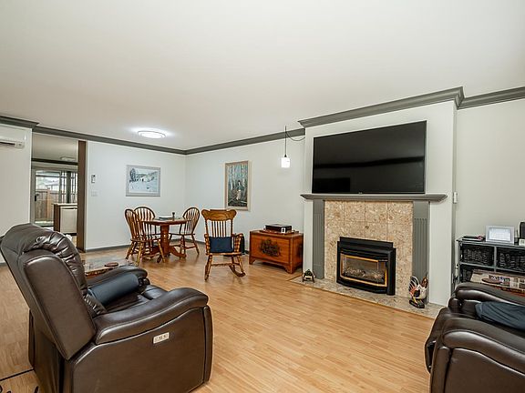 BEAUTIFULLY UPDATED 2 BED/2 BATH has NO STAIRS & feels like a detached home! Bright kitchen with stainless steel appliances, Quartz counters, tile backsplash, eating area & sliding doors out to covered patio & fenced yard! Relax in the open concept living/dining area with cozy gas F/P & bay window! Generous primary bedroom with ample closet space & 3 piece ensuite! Full main bath & 2nd bedroom, could be den/office. MOVE IN READY with fresh paint, new roof, heat pump, laminate flooring & modern fixtures! Single garage & room for 2nd vehicle on the driveway. IMMACULATELY KEPT, 55+, PET FRIENDLY complex with clubhouse & lush landscaping. Peacefully tucked away yet located just minutes from everything! DOWNSIZE WITHOUT COMPROMISE!!