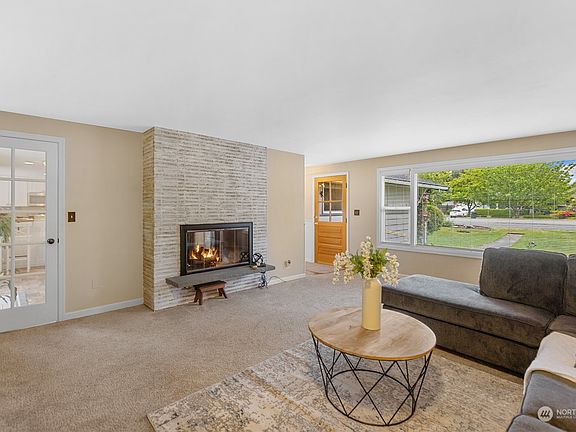 Welcome to this spacious Edmonds rambler with a bright, open floor plan. The kitchen has been updated and boasts a deep farm sink, SS appliances, double oven, and eating bar. Enjoy the warmth of the double-sided gas fireplace that connects the living room and dining room. Primary bedroom with private bath. Oversized shower in main bath. The fourth bedroom could be a family room, large office, or converted into an ADU. Laundry room with extra storage. New hot water heater and 10 yr old roof. The backyard is fully fenced with mature landscaping, fruit trees, stamped patio, hot tub, and firepit area, with room for RV. Only 1 block to Westgate Elementary. Close to shopping and restaurants and just 3 miles to beach, ferry, and downtown Edmonds.