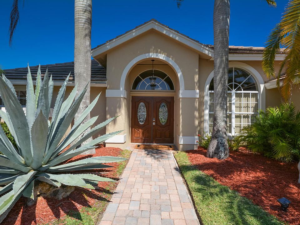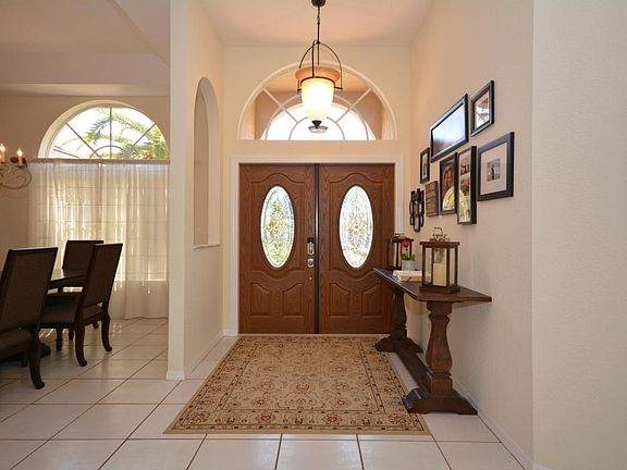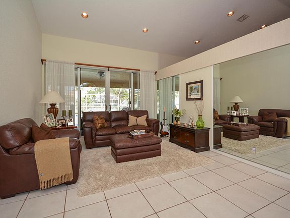 This home has it all!! Gorgeous updated 4 bedroom, 2.1 bath home in upscale Carlyle Estates on oversized waterfront fenced lot w pavered circular driveway, Huge master suite with french doors, 3 bedrooms /lustrous wood floors. 2 full baths, master-roman tub, separate shower, cabana-bath all new tile, shower, dual sinks). European designed kitchen features self-closing contemporary cabinetry, 40'' black pearl granite counters, stainless appliances, 2 convection ovens, & dual-zoned wine cooler. Gourmet dine-in kitchen, breakfast bar, formal dining & living room, large family room, laundry room w/utility sink. Impressive 36X46 screened-in patio, covered outdoor dining area and 38X14X11 private pool, new travertine pool deck, heated spa. Patio access from all living areas and master.