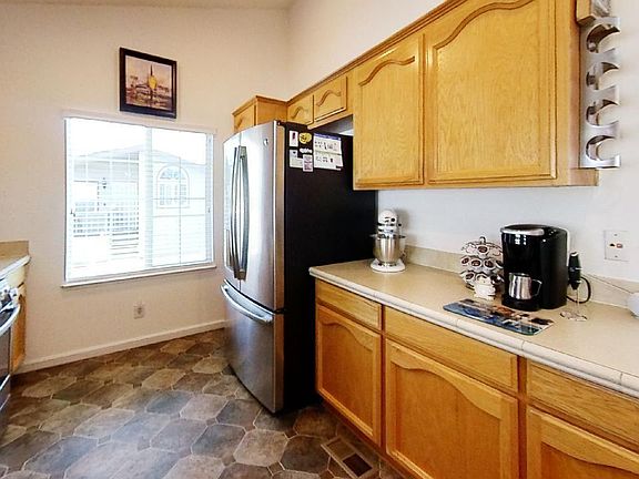 Beautiful, affordable, like-new manufactured home in well-kept Eden Roc Park. Featuring vaulted ceilings, skylights for lots of natural light, and wood print laminate flooring throughout main living areas. Outside you'll find Trex decking at the front and rear porches, a fully fenced yard, a sprinkler system, and 10 foot by 10 foot shed for lots of storage space! Enjoy central heating for colder nights and a whole house fan to cool off after warmer days. This home comes with a Ring security system and Nest smart thermostat system. All kitchen appliances are stainless steel and only 5-6 years old. Washer/dryer are only 1 year old and included in sale. Park resort-style amenities include 2 pools, gym, children's playground, and more! Family (all age) park with LOW space rent! This home is just 13 years old! Room to park 2 cars and additional parking available.
