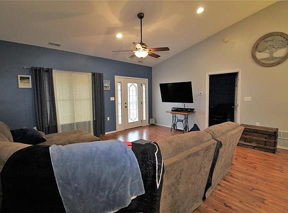 You dont want to miss this perfect escape from the hustle of the city in this 3 bedroom, 2 bath ranch nestled on over 4 wooded acres. The open living area features 9 ft vaulted ceilings and 2 skylights. The kitchen offers beautiful cabinets and countertops. You will find this home has all laminate and ceramic tile flooring. The split bedroom floor plan has master bedroom suite with walk-in closet and 2 additional bedrooms with walk-in closets and guest bath. The large laundry room and over-sized garage/workshop offer plenty of extra storage. Enjoy the scenic surroundings from the covered front porch when you call this home!