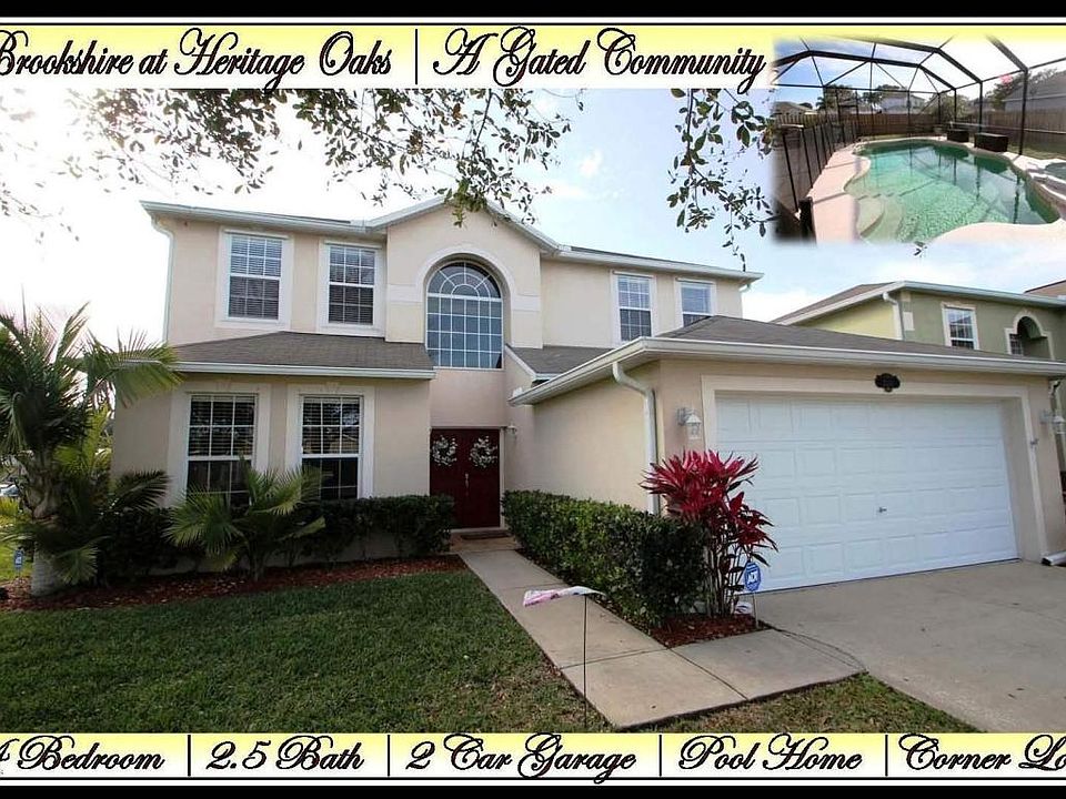 Presenting this Beautiful 4 Bedroom, 2.5 Bath, Two Story Pool home on an oversized / fully fenced, corner lot in the Gated Community of Brookshire at Heritage Oaks. Features include: 10 ft ceilings throughout, Welcoming entry foyer with tile flooring, Formal Living Room & Dining room with new beautiful wood flooring, Large Family room open to the kitchen with many upgrades: granite countertops,island, tile flooring & stainless appliances. Enjoy designer new interior paint, new lighting, & newer carpet too. 1st floor laundry room, slider access to in-ground screened pool. Master suite, on 2nd level, features his & her closets, bathroom with separate shower & soaking tub. Beautiful Home / Many Upgrades / Well Maintained Home /Great schools, close to shopping & I-95. Call for your tour today!