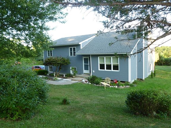This 30 year young home has been lovingly updated by the original owner. Relax by the inviting fireplace in living room which is accented by soaring ceilings. Bright and airy floorplan with Wood floors in living areas and Pergo throughout the rest of the home is a welcome feature. Most recent updates completed in 2013 include: Windows and Storm Doors; Vinyl Siding which includes wrapped vapor barrier and insulation; well Pressure Tank. The roof was replaced in 2009 using sturdy Architectural Shingles. The Peerless' Boiler and matching hot water tank are about 10 years old, along with the oil tank. Both bathrooms have been tastefully renovated and jetted tub has even been added! Central Air Conditioning Unit in 2012. Oversized back deck has just been stained. Everything has been done for you! Just possibly change the paint (if the colors don't suit you) and move right in The split floorplan, and additional rooms on the ground level encourage extended family or home office scenario. The setting is peaceful, with lovely shade trees, mountain and meadow views, and gently landscaped with flowering perennials. Sturdy blacktopped driveway, is built to accommodate a tractor trailer This home was built to last! Owner is sad to leave, but is downsizing, although staying in the neighborhood as they love the location and tranquil setting. Additional acreage is available, information available upon request.