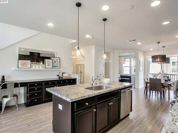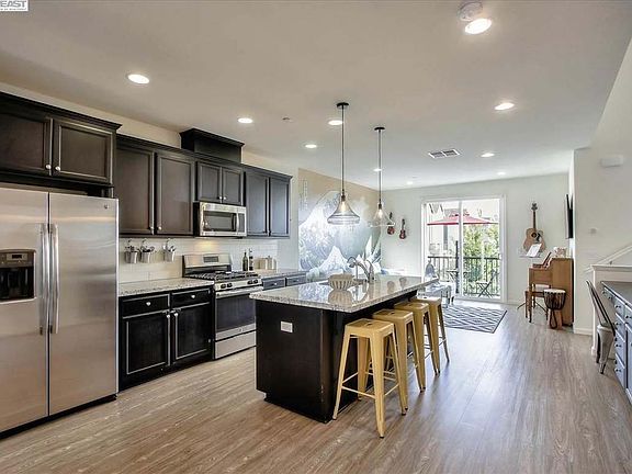 Nestled in the highly sought-after Jordan Ranch Trio community, this beautifully maintained 3-bedroom, 3.5-bath townhome offers nearly 1,900 sq ft of thoughtfully designed living space. Built in 2016, the home features high-end upgrades including a gourmet island kitchen, Smart Home MyQ garage system, tankless water heater, dual-zone HVAC, and a fully customized garage. The layout offers ideal indoor-outdoor living with two balconies overlooking scenic hill views. The home is being offered fully furnished, making it move-in ready. Furnishings include a dining table, king and California king beds in two bedrooms, and bunk beds in the kids' room perfect for families. All major appliances are included: refrigerator, washer, dryer, dishwasher, oven, and microwave. The interiors feature a mix of carpet, laminate wood, and tile flooring throughout. Designed with comfort and versatility in mind, the floorplan includes a first-floor en suite bedroom, a second-floor den ideal for a home office or study space, and two additional suites on the upper level. Whether you're a family looking for great schools or professionals needing home-office flexibility, this layout fits all lifestyles. Located just steps from Cottonwood Creek School (TK 8, rated 9/10), and within easy reach of Emerald High School and Dublin High, this home is ideal for families seeking top-tier education. The HOA ensures a clean, secure community environment, and you're walking distance to parks, shopping, trails, and a short commute via BART, I-580, or I-680. Owner covers HOA dues and trash. Renter is responsible for water, gas, and electricity. First month's rent and one month's security deposit due at signing. No pets allowed. No smoking permitted. Two-car garage with additional guest parking. Minimum 12-month lease. House has all electrical appliances and owner will cover the maintainance for them if any issue happens.
