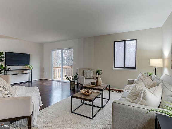 Exceptionally renovated end-unit townhome in sought after Valleywood community! The charming living room boasts sliders to the delightful deck overlooking trees. An inviting dining room is adorned with a chic pendant light and is perfect for entertaining. A spectacularly remodeled eat-in kitchen hosts bright white, soft-close cabinets, stainless appliances, granite counters, planning station and table space. There is a conveniently located main level powder room. An expansive primary bedroom has two closets and a modernized primary bath with a gorgeous walk-in shower with stylish tiling surround. There are two additional generously sized bedrooms, remodeled second full bath with soaking tub. An expansive lower level fully finished family room highlighted by a brick front, wood-burning fireplace and sliders to the lovely patio with a tree view. 2 assigned parking spaces. Updates: Kitchen, Appliances, Counters, Bathrooms, Flooring, Sliders, Lighting. Fireplace sold as-is; fireplace has not been inspected.