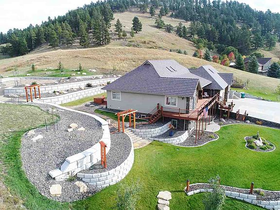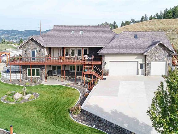You Can't Beat The Views Beautiful main level is highlighted by hardwood maple flooring complimented by a cherry border, a fireplace in the living room that provides a casual ambiance & a beautiful kitchen with granite counters, cherry cabinets & stainless steel appliances. Full walkout basement boasts a 30x32 family room with a recreation area complete with a full custom bar & bamboo flooring, in addition relax and enjoy movies of your choosing in your own personal theater. Room for all with 5 bedrooms ranging in size from11x12 to 15x19. A 1120 square foot garage gives room for all of your toys plus overhead is a 12x25 office that gives you quiet and privacy. Front and rear decks provide awesome views of the Black Hills.