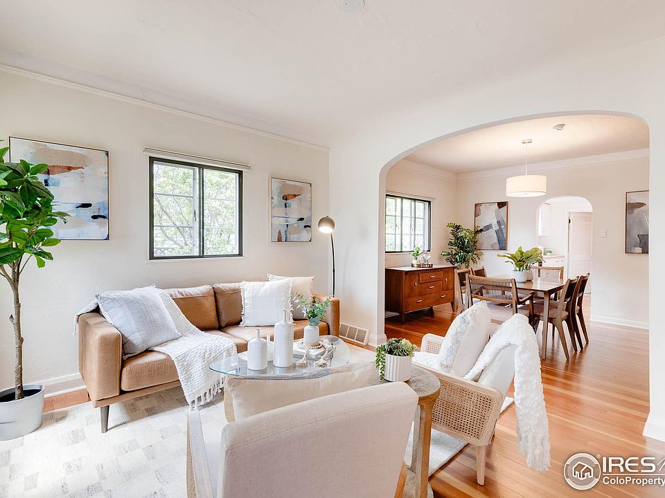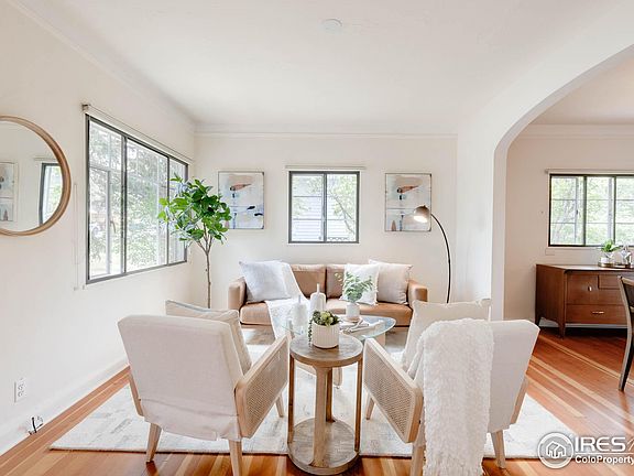 This delightful bungalow located in coveted Chautauqua neighborhood exudes warmth & character, offering a perfect blend of vintage charm & comfort. Natural light pours through abundant windows. Beautiful fir wood floors, built-in bookshelves, tall ceilings & textured walls create an inviting & cozy ambiance. Open layout amplifies the sense of space. The kitchen has generous counter & cabinet space. The front office/2nd non-conforming bedroom boasts southern exposure. A flagstone walkway leads you around to stunning gardens, a flagstone patio & serene sitting areas. Surrounded by extensive shade trees, the interior remains cool during summer. Detached garage off the alley with covered patio. No through streets. Close to CU, Chautauqua Park/hiking trails, restaurants, shopping, bike paths, & local/express bus stop. A truly captivating gem that will win your heart. Don't miss this opportunity. Home Warranty included.