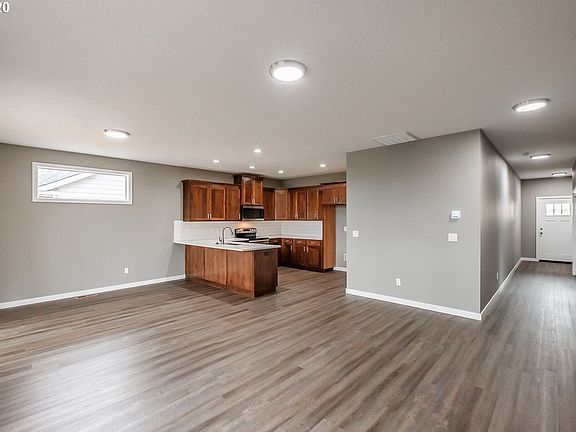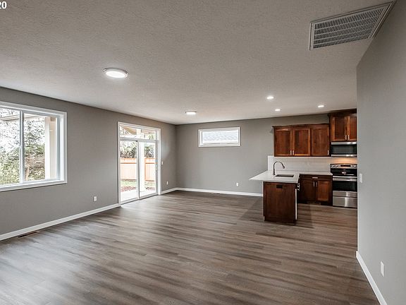 New home thoughtfully built by local builder! One level with 9 ft ceilings and open concept. Master features double sinks and WIC. Granite counters and tile back splash through kitchen and bathrooms. Gas furnace and AC ready. Covered entry and large rear covered patio. Front landscaping and private mostly fenced yard. Flag lot and private yard backs up to state fairgrounds!