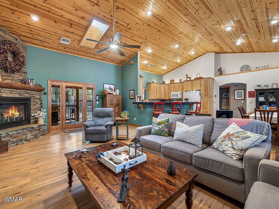 This beautiful 2006 Cedar-sided cabin of a home offers 3 bedrooms and 2 1/2 baths amidst its 1,828 sq ft of living area. Lots of custom features throughout, vaulted ceilings with several having knotty pine tongue & groove. Covered decks in front and back with a 2-car attached garage and a rather tall garage door for that higher profile vehicle. The exterior has just recently been retreated so it looks like new. No neighbor over the back fence so lots of privacy in back! Split floor plan. Gas log fireplace in the great room. You'll love the Pergo flooring, the spacious master suite and so much more. Gorgeous home and very very well cared for!