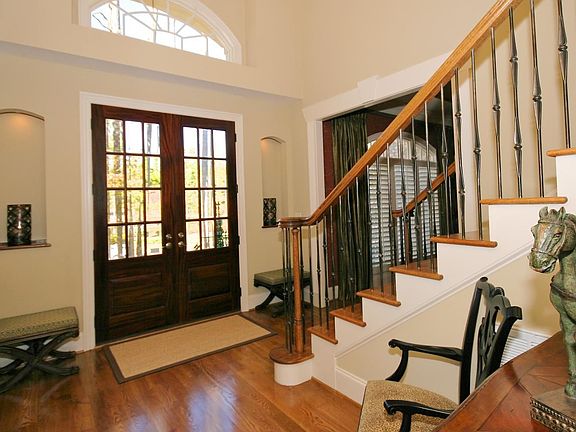 Stunning home overlooking pond and fountain! Bring your most discriminating buyers only! Thousands in upgrades! Inlay dining rm. HW flooring & custom faux paint. Amazing Chef's kitchen w/granite backsplash & custom cabinetry! Office off kitchen. $7,400 in Ethan Allen paper in Owner's suite...stunning! Children's "dream world" featured in Baby & Child Charlotte Magazine! Wooded lot with outdoor fp!