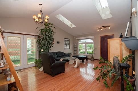 Beautifully updated villa is ready for your next move. Architectural details throughout this home with living/dining room combination featuring gleaming hardwood, skylights and vaulted ceilings. Access patio and fenced backyard. Bright and open concept opens to family room, also with hardwood and corner gas log fireplace - could be converted to dining room as it opens to awesome kitchen. Vaulted, decorative shelving/opening to other living spaces, upgraded counters and decorative backsplash - lots of cabinetry, large peninsula & pantry. Appliances are included with washer/dryer negotiatable. Master suite features trey ceiling, crown molding, walk-in closet and full, updated bath. Access your own sanctuary with the unheated sunroom for a morning cup of coffee and daily read! Add'l bedrooms feature crown molding and large closets with easy access to beautifully update hall bath. This home is meant for entertainment! Easy access to everything and move-in ready with new, 40 yr. roof '12.