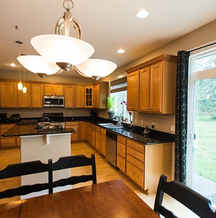 Newer, peaceful 3 bedroom country custom home on 5 acres. Large master suite with walk-in closet and jacuzzi jetted tub. Large office/den/or 4th bedroom and bonus room, spacious kitchen, granite counter tops, hardwood flooring, wall to wall carpeting in bedrooms, 9' ceilings, stainless steel appliances, skylight, reverse wired for generator. One acre parked out and four acres of mature trees with salmon stream. High speed satellite internet and satellite TV dishes and wiring installed.