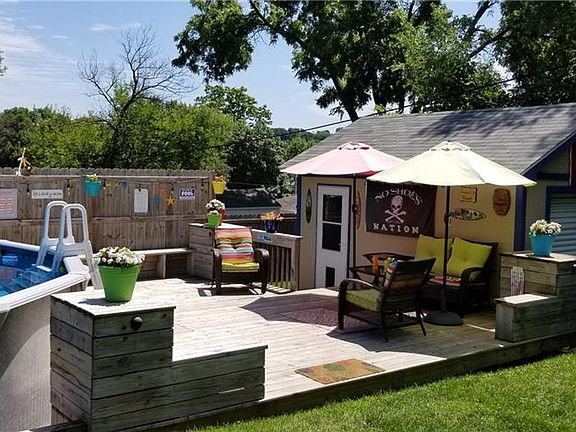 Family and friends lovingly refer to this home as "the resort" The yard is over a third of an acre, perfectly manicured with a permanent above ground heated pool. Beautiful custom built deck and "He Shed" with cable, electricity and AC. The shed also has another space that can store all of your pool toys, riding mower and lawn equipment. Relax in the pool all day, end your evening with smores by the fire pit, drink coffee on the covered front porch. Deck on the back of the home perfect for grilling and taking in your beautiful yard. Freshly painted from top to bottom with a very light neutral gray. Updated bathroom with tile, convenient first floor laundry. Basement has plenty of storage and a workshop!. New windows, AC, electrical and more. Nice quiet street with fantastic neighbors. Home is eligible for NFC financing with a $10,000 grant. This is the kind of home that has been lovingly cared for and many memories with family made. 3rd Non-Conforming Bedroom Upstairs!