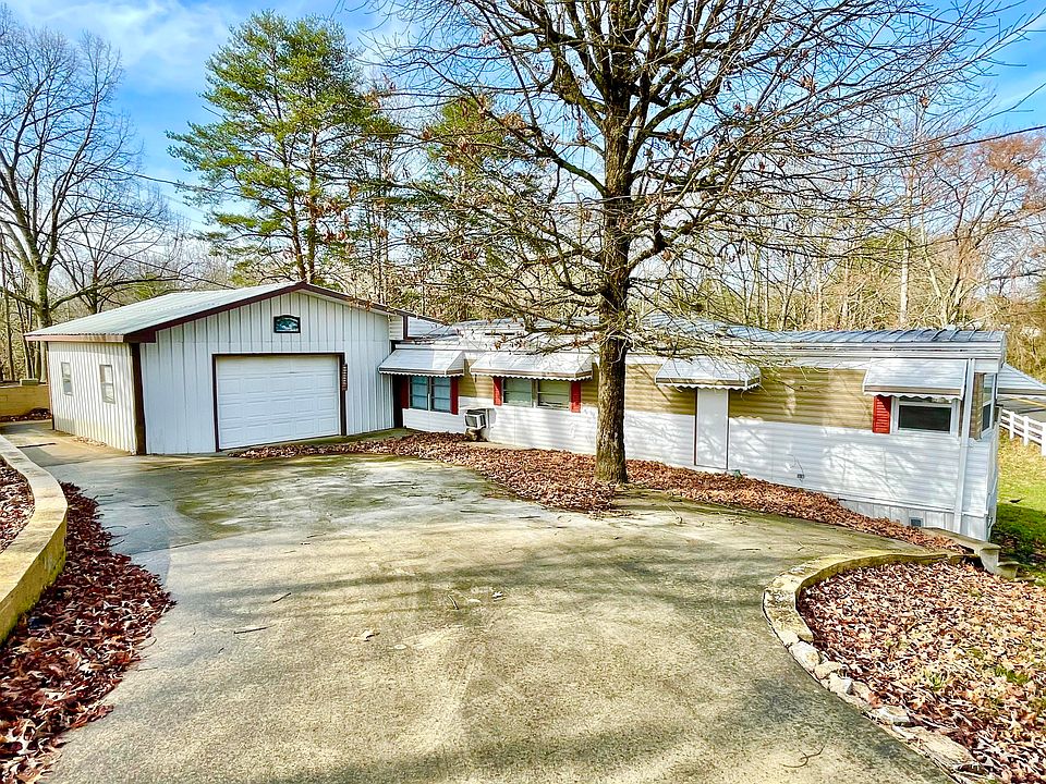 Ideal vacation property, features a two bedroom and 1 bath mobile home with an attached garage plus a large detached garage for your boats and toys that could have a one bedroom apartment. Just minutes to Wolf Creek Marina and a nice boat launch at Dudley Hill which is down the street from the property. All of this sitting on 3.88 acres. Sellers will give buyers $5000 back at closing for renovations for an acceptable offer