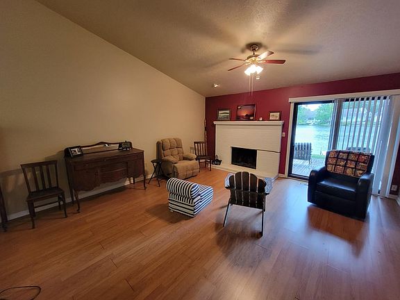 Enjoy the quiet life with this 2 bedroom, 2 bath condo in The Shores. One level living features eat in kitchen, large open great room with cathederal ceilings and fireplace. 2 car garage has plenty of room for cars, beach toys and additional storage. Backyard patio overlooks Lake Claire, and aluminum boat dock stays with property. Condo association has a pool available for association members. Property sold in as is condition. Kick back and enjoy life here.