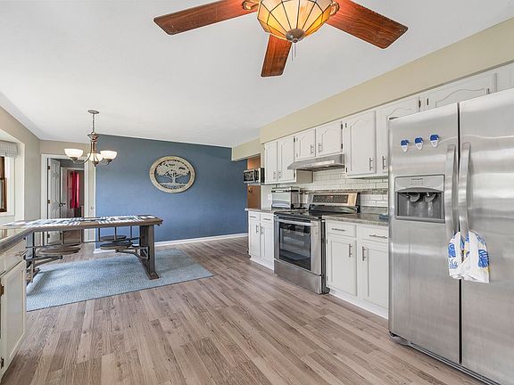 Beautiful and spacious ranch home on Willow Lake! WATERFRONT PROPERTY! Main level has NEW flooring throughout! Modern and updated eat-in Kitchen overlooking the water! Kitchen features breakfast bar, stainless-steel appliances, white cabinetry, and tile backsplash. Family Room has wood-burning fireplace and deck access! Three Bedrooms on main level including Primary Suite with attached full Bathroom! Fully finished Walk-Out Basement includes large Rec Room, Workshop, full Bathroom, and two bonus rooms. Enjoy the views from your deck or covered patio! Attached 2-car garage. Other updates include NEW ROOF with complete tear-off (2021), Kitchen and Bathrooms remodeled (2019), newer garage door (2013), and newer furnace, A/C, Pella patio door, and seawall (2011). Schedule a viewing today!
