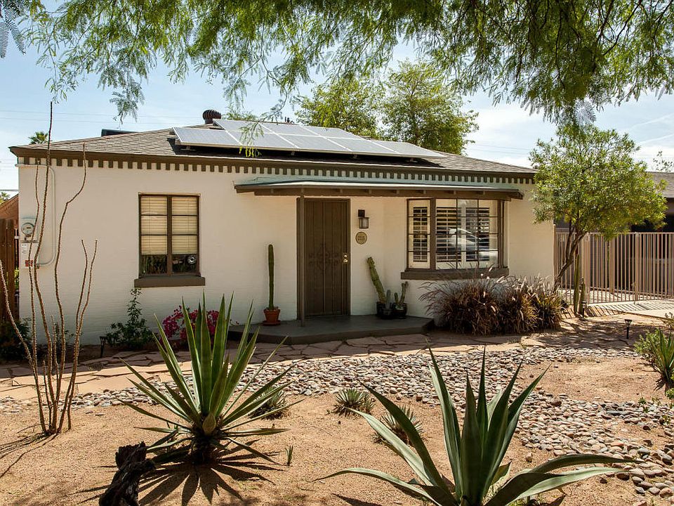 WOW! Beautifully remodeled,CORONADO HISTORIC DISTRICT home, move in ready with $28K owned Solar System 2015.Offers travertine flooring,bdrm. carpets 2016,Custom hand crafted cabinets,counters,lighting,appliances,gas stove all new. New roof 2015 w/transferable warranty. Additional upgrades in 2016 totaled $32K(see docs.tab) New plaster repair of all interior walls, new fans,lighting fixtures in dining rm.living rm & master bdrm wired for surround sound. Home painted inside and out 2016 including french doors,covered porch,casita, tool shed and windows. Back yard meant for entertaining with covered porch,patio w/fountain,fruit trees, grass, shed and casita. Drip system 2016 w/timer. Security cameras w/ motion detection. Custom industrial style carport. Casita not included in sqft(docs. tab)