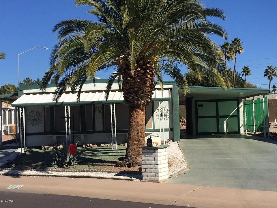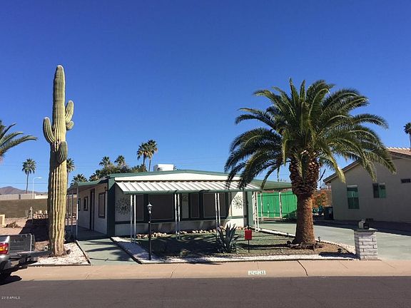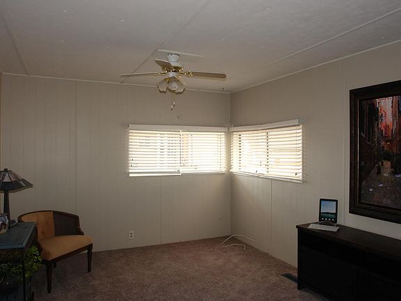 Nice double wide on good sized lot with deep backyard. Exterior is stucco, there is a single garage that would hold a car and golf cart w/ wall air conditioner as well as a 14 x12 storage shed/workshop area. 2014 Carrier AC, 2011 water heater. Inside has some updating including electrical, newer kitchen cabinets, appliances, stacked washer/dryer, double paned windows and ceiling mounted light fixtures. Hall bath has been upgraded. Pleasant home with lots of light, bedrooms nicely sized and good storage space. A little cosmetic work would turn this into a gem! Come and take a look.