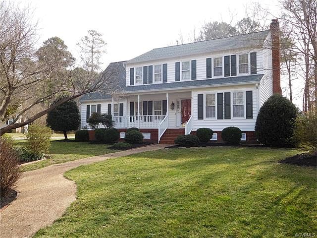 Come see this charming Colonial with it's classic front porch within walking distance to Godwin High School, great shopping and super restaurants. Owner has freshened interior paint, replaced roof, installed new wall-to-wall carpeting on second floor and added a light filled solarium. Home offers 2600+ square feet including hardwood floors on the first floor, four bedrooms, master has vaulted ceiling, private granite topped bath, with His and Her closets! The granite kitchen has stainless appliances,Living room or library, dining room, cozy family room with wet bar and fireplace complete a perfect floor plan for today's lifestyle. The grounds are fantastic, a privacy fence in rear yard, access to attached garage plus a large garden shed, aggregate walkway, framed by irrigated lawn and garden.