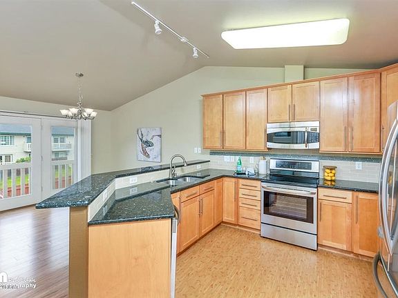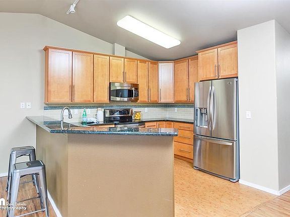 Beautiful ZLL in South Anchorage that backs to greenbelt with fenced back yard. Open floor plan w/vaulted ceilings. Kitchen has SS appliances, 36 inch Cabinets, tile back splash and Led under cabinet lighting. Large master bedroom with WIC. Home is inwalking distance of shopping, schools and recreation
