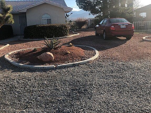 A well built home with a great view of mountains and hot air balloons with your morning coffee. Landscaped with beautiful trees and bushes. Easy access to schools and downtown Pahrump. Great neighbors and neighborhood. Also has parking for recreational vehicle with 50 Amp service and dump for black and grey water. Fenced in storage for 40 ft recreational vehicle.