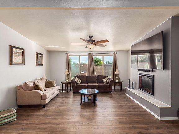 ***New A/C, water heater, roof coating, pool deck coating, doors, trim boards, painting on both interior and exterior. ******2-10 Home Warranty offered with full price offer.***Beautifully updated ranch style home situated on a cul-de-sac lot. Vaulted ceilings, charming fireplace, soothing palette, ceiling fans, & handsome wood ''look'' tiled floors. Formal dining room w/French doors to patio, window blinds, breakfast bar, stylish kitchen counters, new SS appliances, wine cooler, & plenty of painted wood cabinetry w/hardware. This meticulous home is move-in ready w/4 bedrooms, plush carpet, ample closets, & 2 upscale baths w/a granite counter in the master en suite. Trellis covered paver patio, sparkling pool, & endless blue skies. Nearby Shopping & Restaurants. Will not last!!