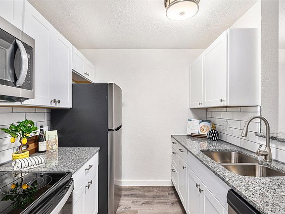 Bright and light, FULLY REMODELED 1 bedroom, 1 bath condo in Prime Location! This stunning unit features brand-new everything — from sleek kitchen cabinets and granite countertops, SS appliances to fresh paint, new light fixtures and plush carpet throughout. The Bathroom is boasting new stylish tiles and modern sink. The balcony oversees the cutest courtyard and a pool. Modern upgrades make this a move-in-ready gem! The building offers the convenience of an ELEVATOR, HEAT IS INCLUDED IN HOA. You'll also love the close proximity to Heather Ridge Golf Course, light rail, hospitals, I-225, shopping, dining, and more. Don't miss out on this ideal blend of comfort, style, and location!